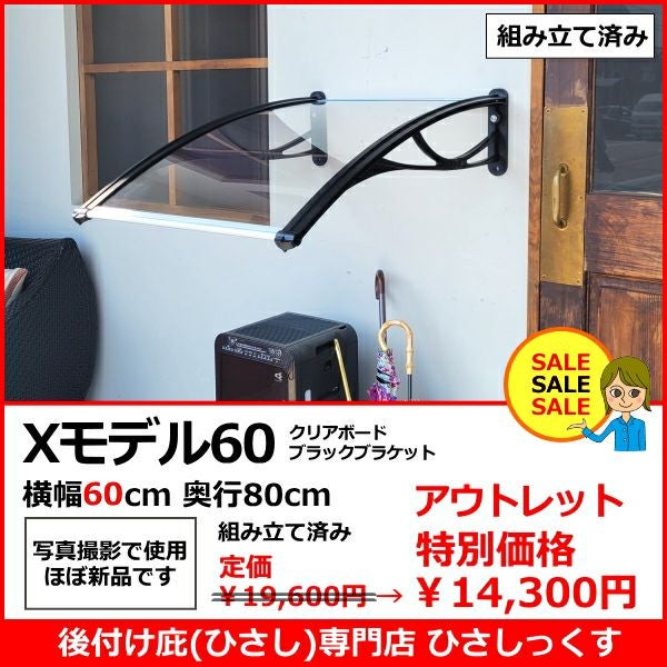 【アウトレット 撮影で使用しただけの良品です 組み立て済み】 Xモデル60 クリアボードxブラックブラケット W(幅)60cmxD(奥行)80cm 後付け庇専門店