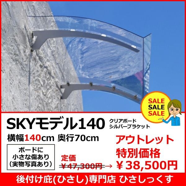 【アウトレット ボードに小さな傷あり(2)】 SKY140モデル W(幅)140cm×D(奥行)70cm クリアボードxシルバーブラケット後付け庇専門店ひさしっくす